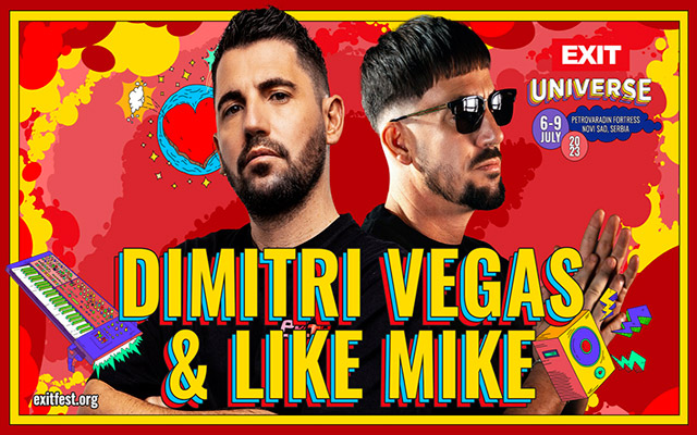 Dvostruki prvaci najprestižnije DJ Mag Top 100 liste najboljih svetskih DJ-eva Dimitri Vegas & Like Mike ove godine proslavljaju dve decenije apsolutne dominacije na elektronskoj sceni! U svom muzičkom portfoliju imaju rekord za najveći elektronski solo nastup u Nemačkoj, dok su u Belgiji sa 60.000 prodatih ulaznica u tri dana nadmašili rekorde koje su pre njih postavili U2 i Madonna! Na ovogodišnji EXIT festival donose hitove „Tremor“ (feat. Martin Garrix), „Complicated“ (feat. David Guetta, Kiiara), „Bounce“ (feat. Snoop Dogg), „Hey Baby“ (feat. Diplo), „When I Grow Up“ (feat. Wiz Khalifa) i druge, koji u zbiru broje više od 1.5 milijardi slušanja samo na YouTube-u!