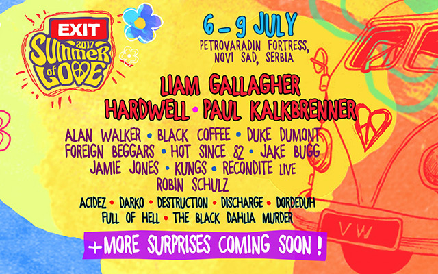 Iste noći kad i Liam, još jedan muzičar koji puni stadione dolazi na EXIT, ali na impozantnu Dance Arenu! Nemački tehno producent Paul Kalkbrenner nedavno je nastupio pred pola miliona ljudi ispred Brandenburške kapije, potvrdivši status jedne od najvećih zvezda današnjice. Liam i Paul obeležiće otvaranje festivala, ali završnu, veliku žurku, po uzoru na prošlogodišnji nastup Davida Guette, na glavnoj bini napraviće čovek koji je poslednjih pet godina jedan od vodeća tri svetska DJ-a, od čega prvoplasirani čak dve godine uzastopno - Hardwell! Na glavnu festivalsku pozornicu stiže i glas nove generacije, popularni 22-godišnji engleski kantautor Jake Bugg! On na EXIT dolazi posle tri albuma sa vrha britanske liste i čak 17 singlova, uz nastupe na najvećim festivalskim binama i NME nagradom za najboljeg solo izvođača. U četvrtak, 6. jula na "Mejn" dolazi i trio koji predvodi Alan Walker, autor hitova "Faded", "Alone", "Sing Me to Sleep" i drugih koji u zbiru dostižu dve milijarde YouTube pregleda, dok će treće večeri, 8. jula, nastupiti i popularna hip-hop i dubstep grupa Foreign Beggars!